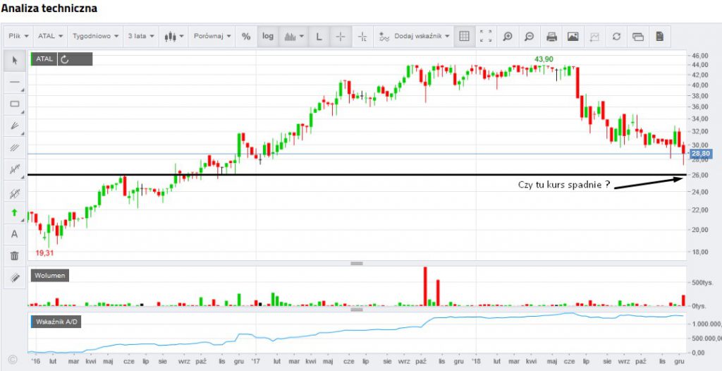 Nie ukrywam iż od strony technicznej słabo wygląda obecnie Atal i jak dla mnie realny jest spadek nawet w kierunku 26zł.