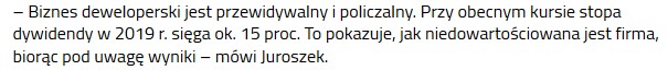 To co mnie zainteresowało to z pewnością lepsze (atrakcyjniejsze) wskaźniki finansowe w stosunku do lidera rynku Dom Dewelopment (w nawiasie podane są dane Dom Dewelopment)