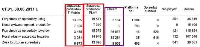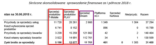 Eurotel w 2 kwartale 2018 roku zarobił 2 mln zł (o 5,5% więcej r/r) czyli lepiej od moich 1,7 mln szacunków. Mój sceptycyzm wynikał z kilku powodów jak wzrost wynagrodzeń, wyższy kurs eur/pln wpływający na wyższe czynsze najmu oraz dosyć wysoka baza rok temu sprzedaży w salonach Play i T-Mobile (ogólnopolska akcje rejestracji kart pre-paid). Moje obawy częściowo się potwierdziły bo zarówno T-Mobile jak i Play zanotowały gorszą sprzedaż ale świetnie poradziły sobie salony iDream (marka Apple) co widać doskonale poniżej (uwaga! dane półroczne a nie kwartalne).