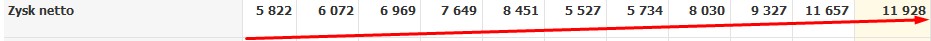 Eurotel jest idealną spółką fundamentalną gdyż jest w wieloletnim trendzie wzrostu biznesu co widać po rosnących co roku przychodach i zyskach.