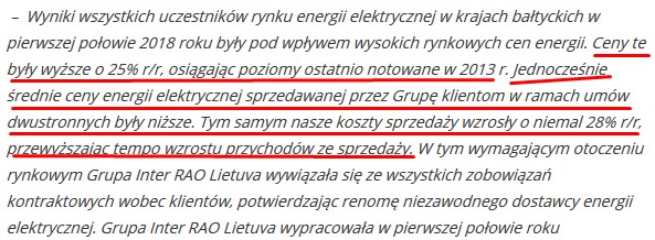 Kolejną spółką na której wyniki może mieć wpływ spadek Rubla to Inter Rao Lietuva (IRL). W przypadku tej spółki prawdopodobnie odwrotna jest korelacja niż w przypadku Asbisu, czyli osłabienie Rubla pozytywnie wpływa na wyniki. IRL jest pośrednikiem sprzedaży energii którą sprzedaje w EUR głównie na Litwie (78% przychodów) a jest ona głównie importowana w Rublach z Rosji (65%).