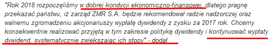 Należy też wspomnieć iż firma jest spółką dywidendową, w tym roku ma być wypłacone 1,10zł dywidendy (stopa dywidendy 4%) a w kolejnych latach wypłaty mają być kontynuowane i zwiększane.