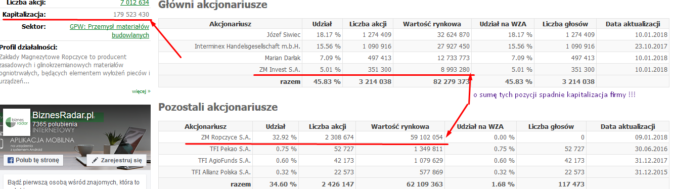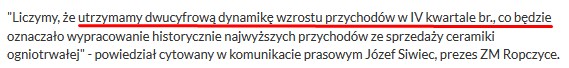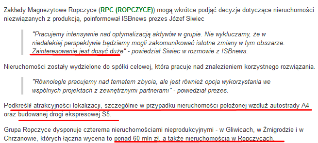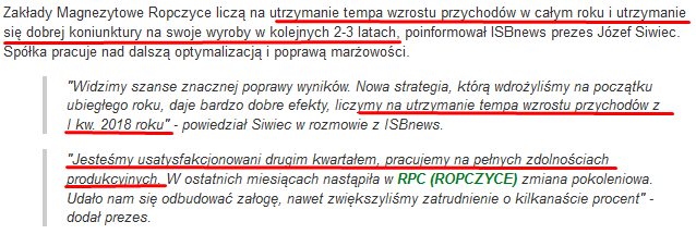 przez spółkę, z danych finansowych podanych na biznesradar.pl i wywiadu z prezesem Ropczyc który przeprowadził serwis ISBnews.