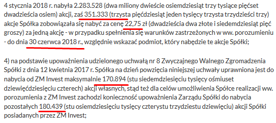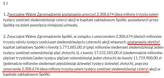 Po skupie i umorzeniu akcji kapitalizacja spółki spadnie do 111,428 mln i c/z spadnie do 12,18.
